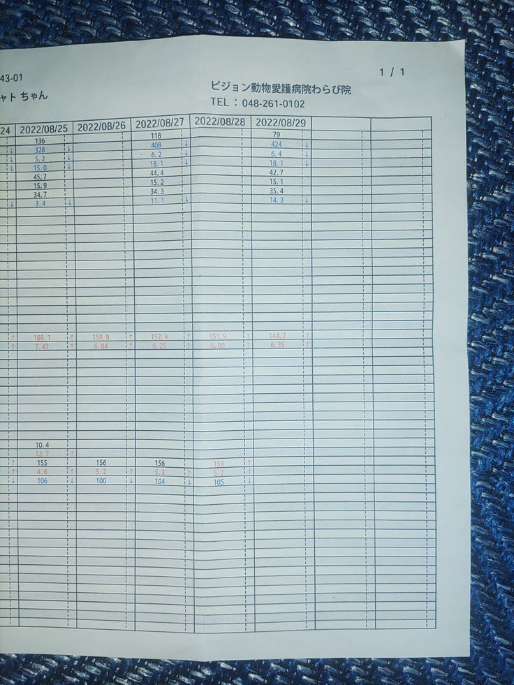 ↓考えた結果すぐ入院させました。この時点でいつ発作を起こして亡くなってもおかしくない数値だと診断を受けました。一つの望に向けて、入院治療を選択しました。