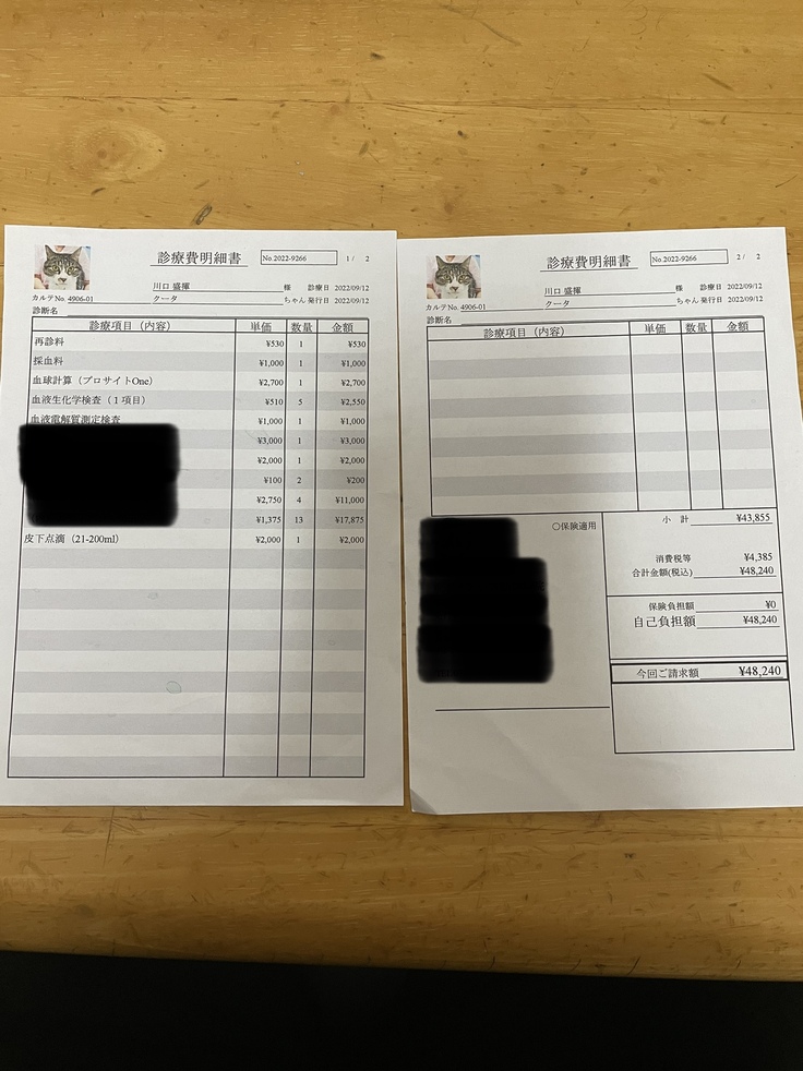 ※現状、血液検査の数値が安定しないためこれ以上に病院に通う回数が増えると想定されます。故にに通院料増えると思います。