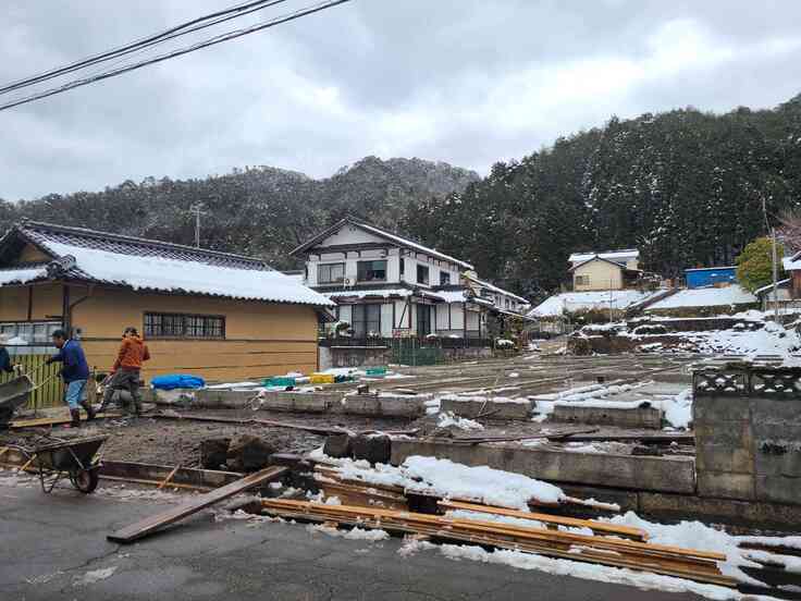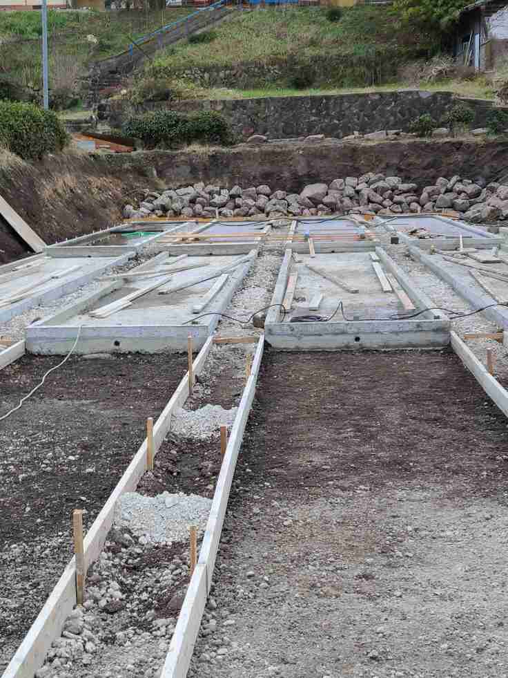 設置工事は社員も、型枠つくりやコンクリートを運んだり手伝いながら進めました。