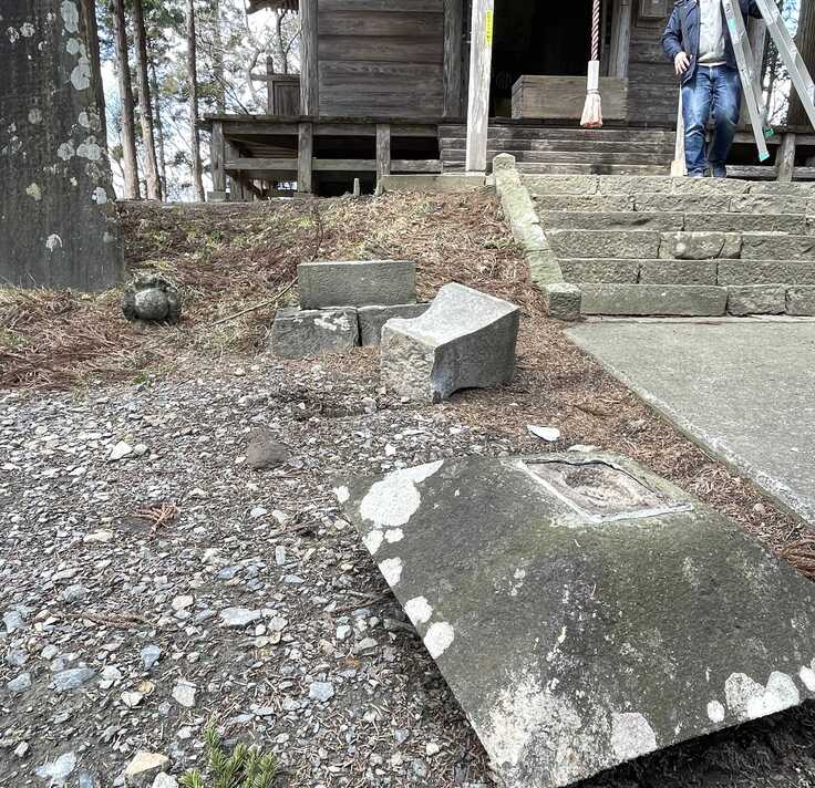 令和4年(2022年)3月16日夜発生した、福島県沖の地震で登米市は震度6強の揺れに見舞われ、津島本宮社も例外ではなく基礎部分から神社全体の改修工事が必要となりました。地区の氏子の皆様も高齢化が進み、思うように改修資金を募ることができません。
