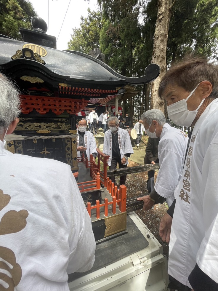 毎年4月の春の例祭(神輿渡御)に合わせて、工事完了したことを神様にご奉告いたすため竣工奉告祭も執り行いました。傾いていたご社殿は基礎工事・破損部の木工事にて立派に改修することができました。その中での神輿渡御は例年にも増して厳かな祭典をすることができましたことにつきましても感謝申し上げます。