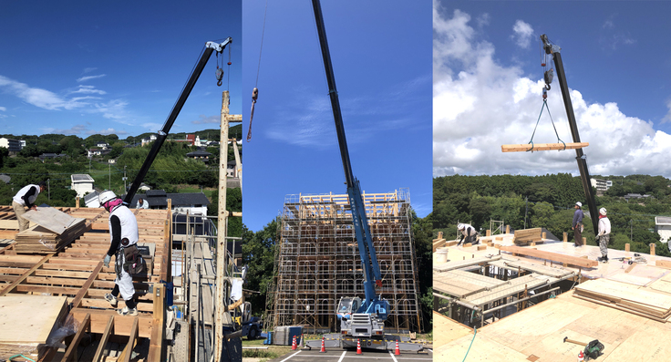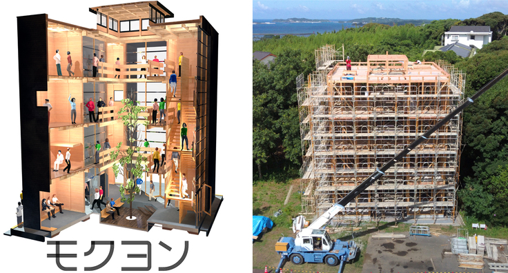 本プロジェクトでは、長崎県の離島「壱岐の島」で活動する建築設計事務所:睦設計コンサルタントと全国で大規模木造建築の構造設計を手掛ける木構堂による設計、地元の建築技術を集結させた施工体制で、日本初のビル建設に挑んでいます。
