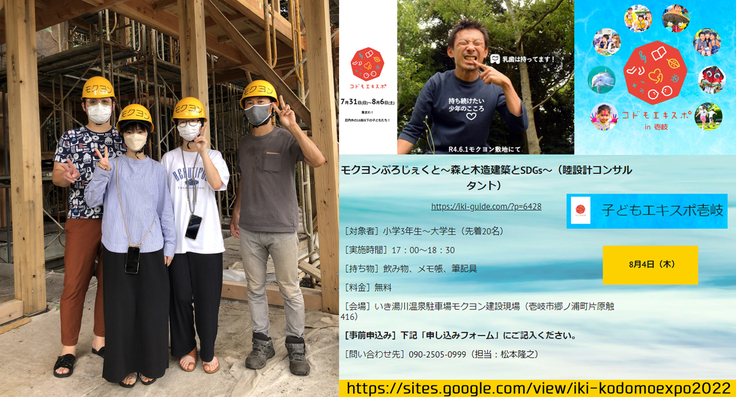 ・建設現場において、8月4日「子どもエキスポin壱岐」で森と木造建築について講義します。