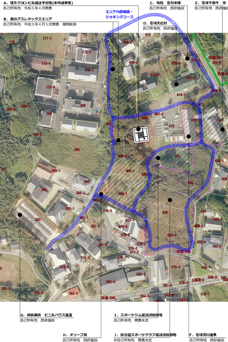 本計画敷地の一体エリアに散在する既存施設である、壱岐湯川温泉・壱岐牛和牛弦・壱州本陣・壱岐文化村の中核施設としての機能を果たします。エリア一帯を「梅坂🌸ふろしき」としてエリアブランド化し広大な隣接敷地を活用して、今後幅広い分野の事業誘致と観光プログラムメニューの提供を計画しています。