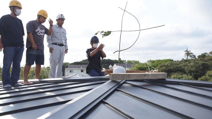 「睦モクヨンビル」の最高点地上16mでの上棟神事