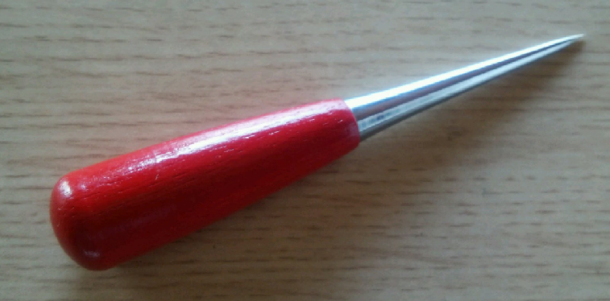 目打ちという手芸道具です。先の尖った道具が必要です。