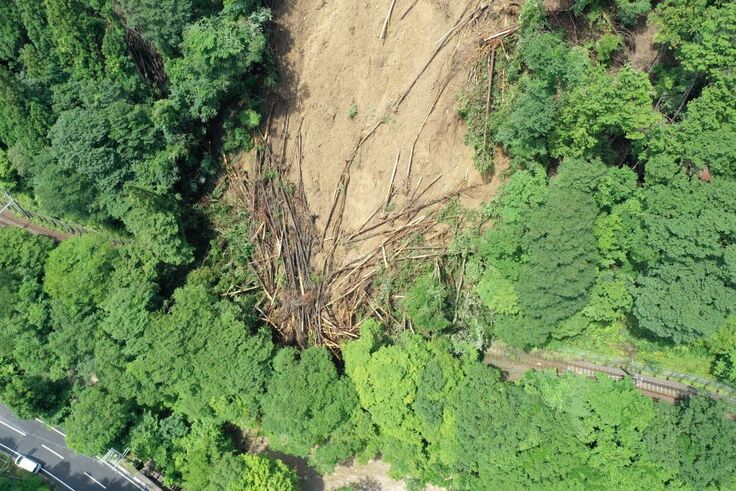 (令和2年7月豪雨によって京都市内で発生した大規模な土砂崩れ)