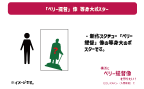 「ペリー提督像オリジナルトートバッグ」(4,000円)と「ペリー提督像アクリルスタンド」(3,000円)、「ペリー提督像等身大ポスター」(10,000円)をご用意しました。