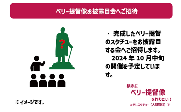 クラウドファンディングのリターンとして用意しております「新作スタチュー『ペリー提督像』お披露目会へご招待」ですが、このたび日程が決まりました!