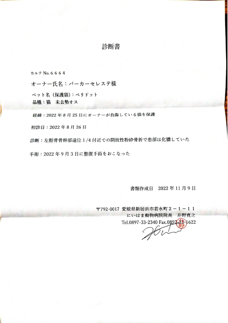 しかし、私はこの子猫を見捨てることはできませんでしたので、自己負担と、友人からの寄付で手術を行うことに決めました。
