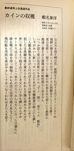 ところで、野樹かずみはペンネームです。自分で選んだ。そんなふうに、蝦名さんは、詩人、歌人としての誕生日を、自分で選んだのかもしれません。