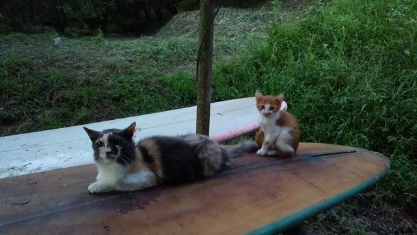 右の猫は、3ヶ月位のボーイ猫のとらちゃん。