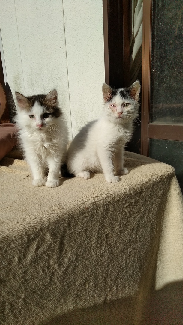 この前友人が保護してくれた三匹の猫は、風邪引きしてますが、元気です。
