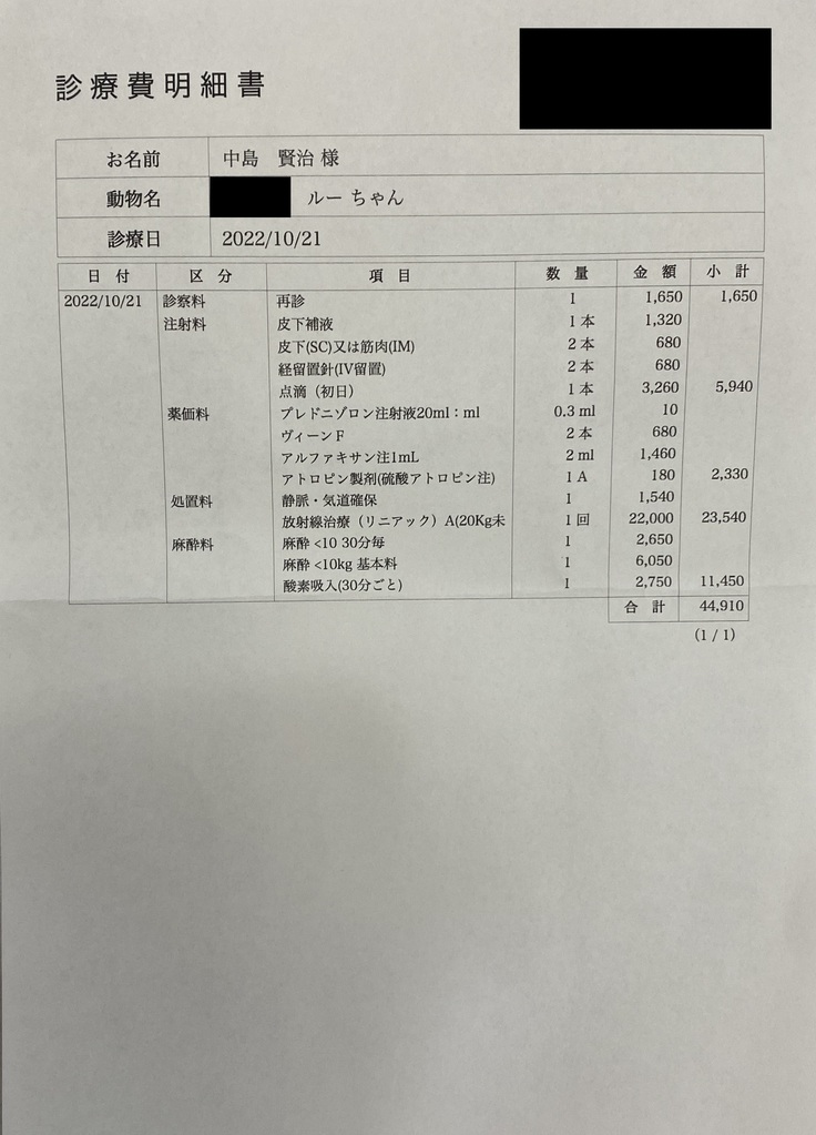 病院までの道のりに時間がかかるため、以前ルーちゃんはストレスのためかおしっこを1日しないこともありましたが、今は毎日おしっこするようになってきました。