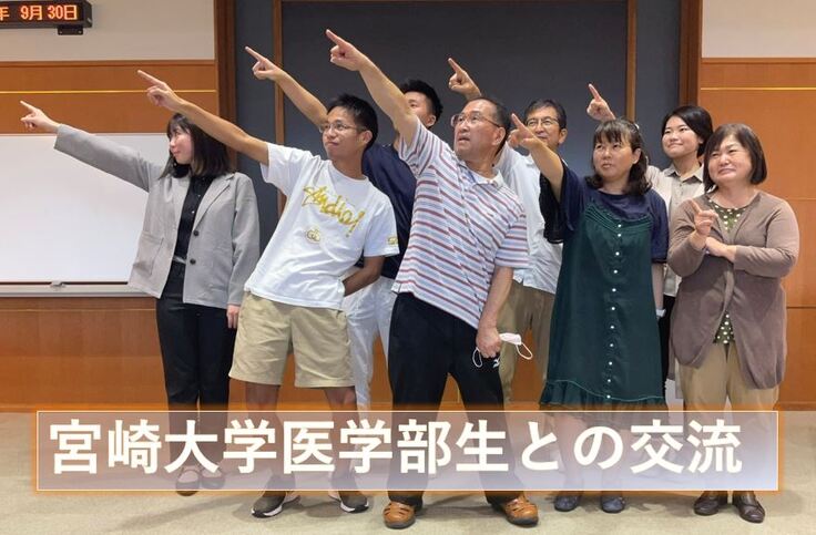 <月度の交流会で> <宮崎大学の医学部生たちと>