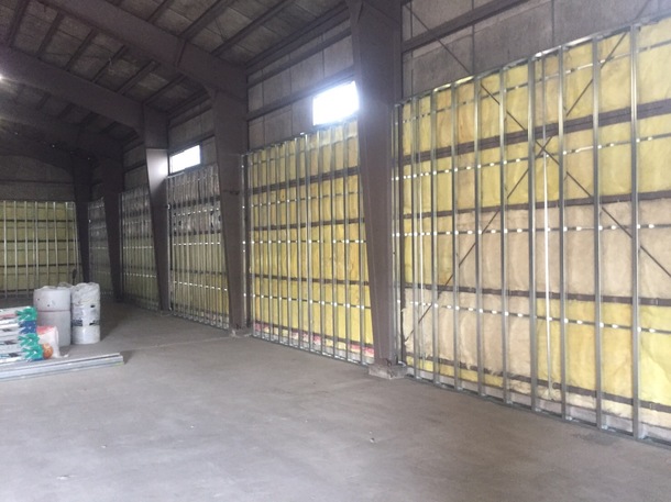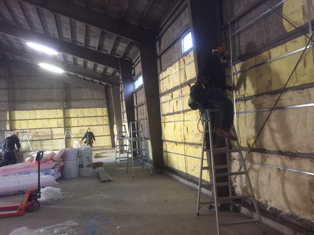 断熱材をたくさん入れることができました。壁面がどんどんきれいになっていきます。