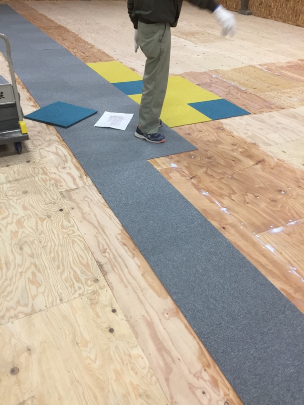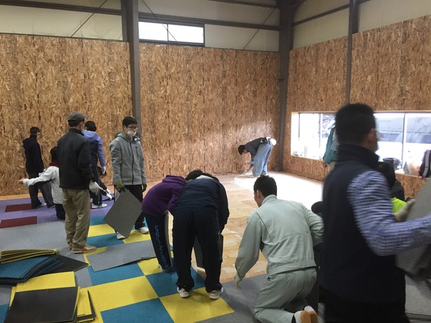 教わりながら選手とご父兄の皆さんでタイルカーペットを貼りました。