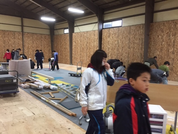 まだ器具は全部そろっていませんが、このように身軽な格好で暖かく練習できる環境となりました。この真冬に外気温が高めの日ではありますが、先日は20度まで室温が上がり、選手も汗をかいて元気に練習できました。