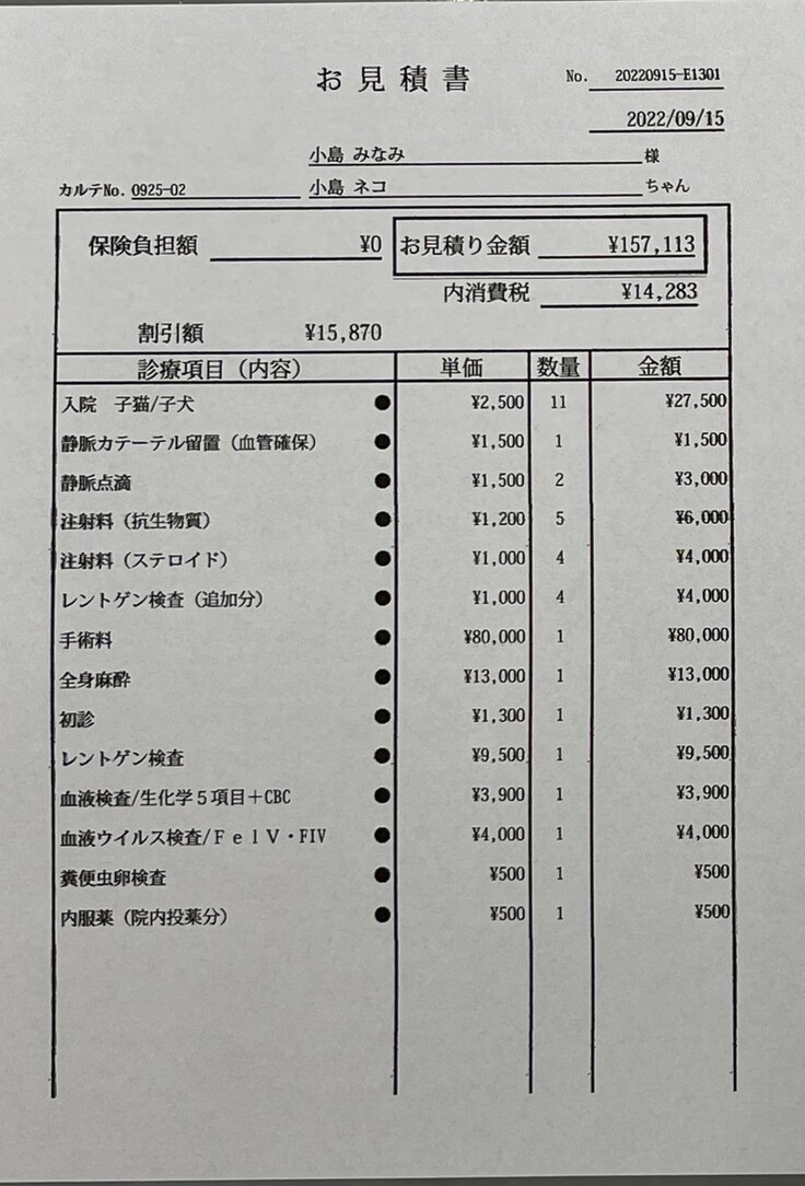 しかし、動物は保険がなく治療費が高額で私ひとりで負担するには厳しい金額になります。