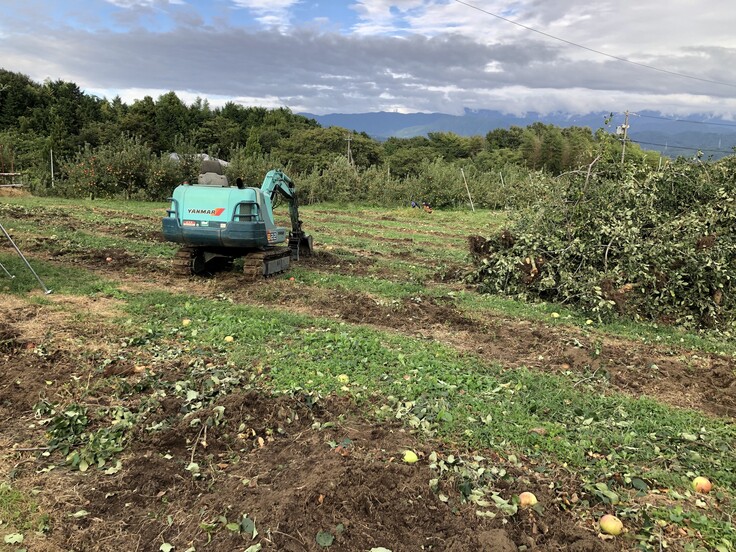 台風14号により義兄の農園のりんごの樹が約400本倒れました。