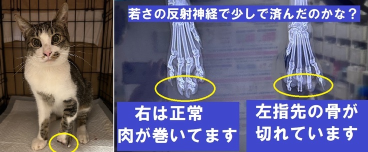 人間が仕掛けたトラバサミに足をはさまれ、切断してしまった猫もいました。