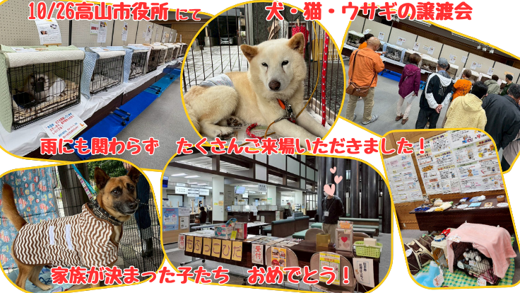 10/26 その日だけ大雨の中、「犬猫譲渡会」を高山市役所にて敢行!