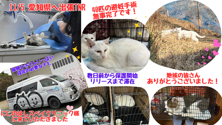 11/5 には、愛知県田原市へ出張してのTNRを行いました。