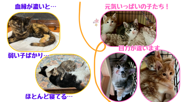 「血が濃い」のか、10を超えるすべての猫が、衰弱?というほど弱々しいんです。