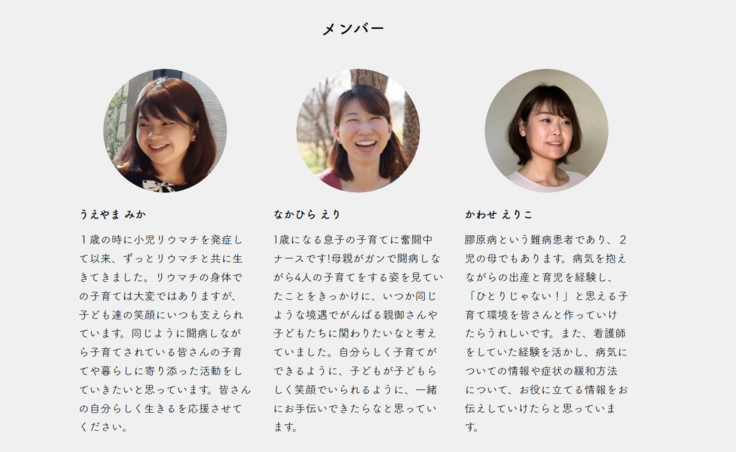 「病気を抱えながらも懸命に子育てをがんばる闘病ママとパパを応援したい」では、