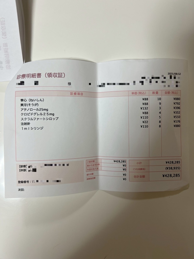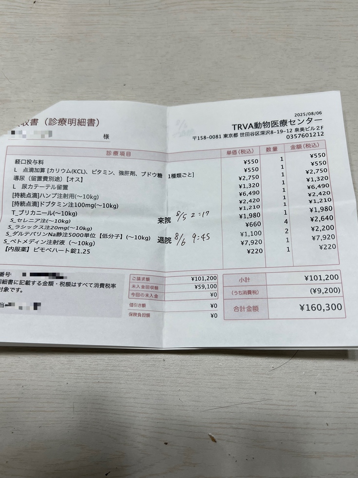 一部ではありますが、今回1匹に対してかかった明細書も掲載させていただきます。