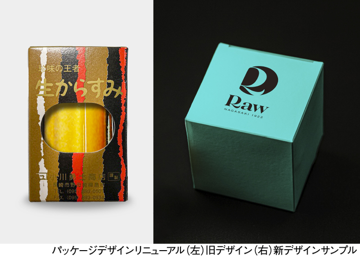40年以上変わらないパッケージデザインを見直し、一般的なカラスミが持つイメージを全く新しいものにアップデートしていきます。それにより比較的若い年代にも受け入れられることが「次の100年」の見通す上で不可欠だと考えます。さらに決して安いものではないことから、贈答用として人気を博した時代もあり、その流れをもう一度復活させるために、贈っても恥ずかしくない、手にした方に喜んでいただけるようなデザインを採用します。