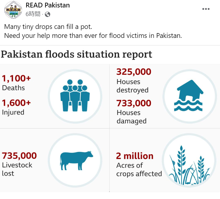 一方、目下の支援はまだ不足しています。本日、READがFacebookに掲載していた図にあるように、今回の洪水の規模は甚大です。