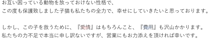 【返金はせず、現在かかっている治療費と同額を目標金額に設定しておりますので、そちらにあてさせていただきます。】