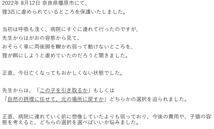 置き去りにされた猫に手術を行いたい