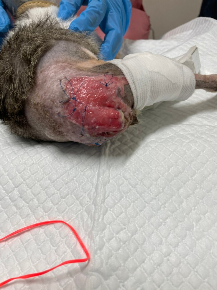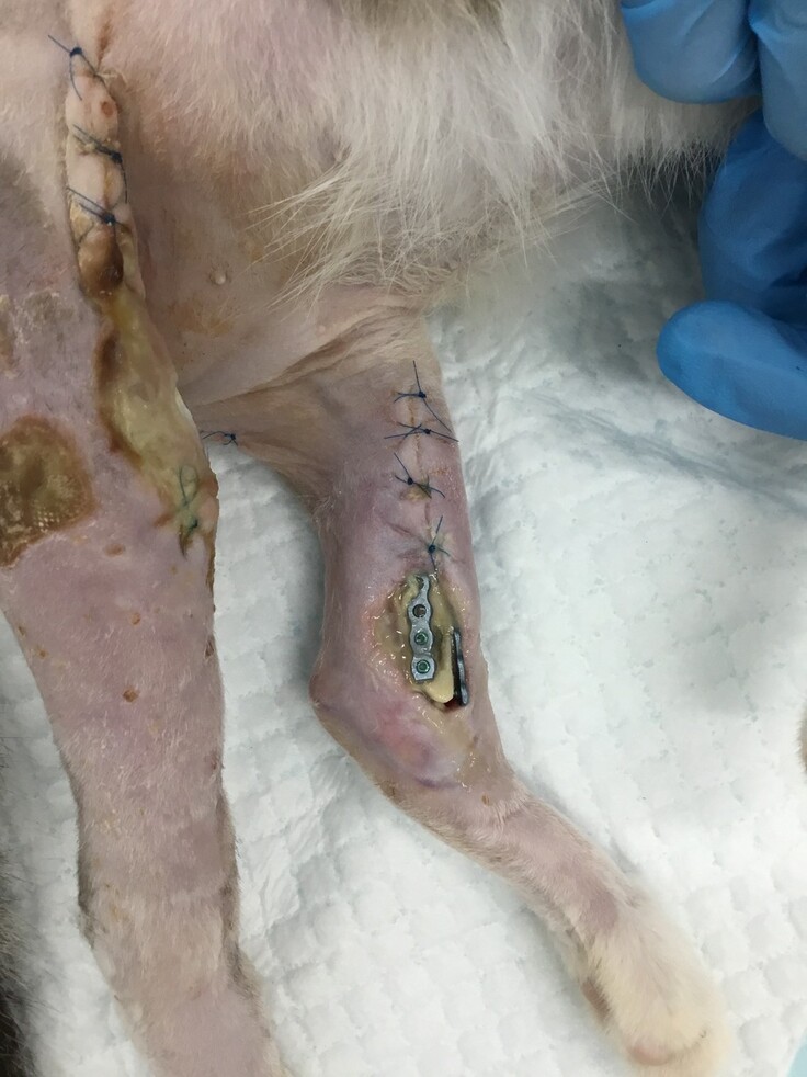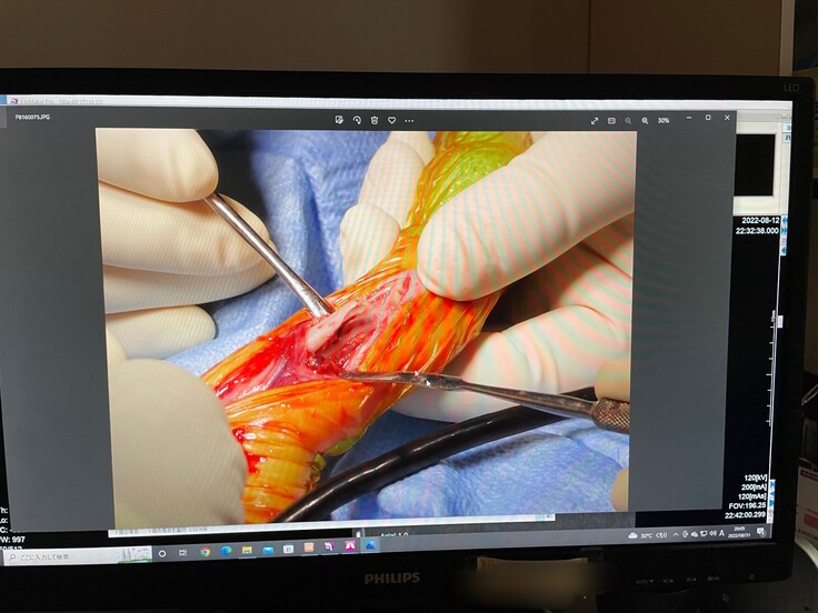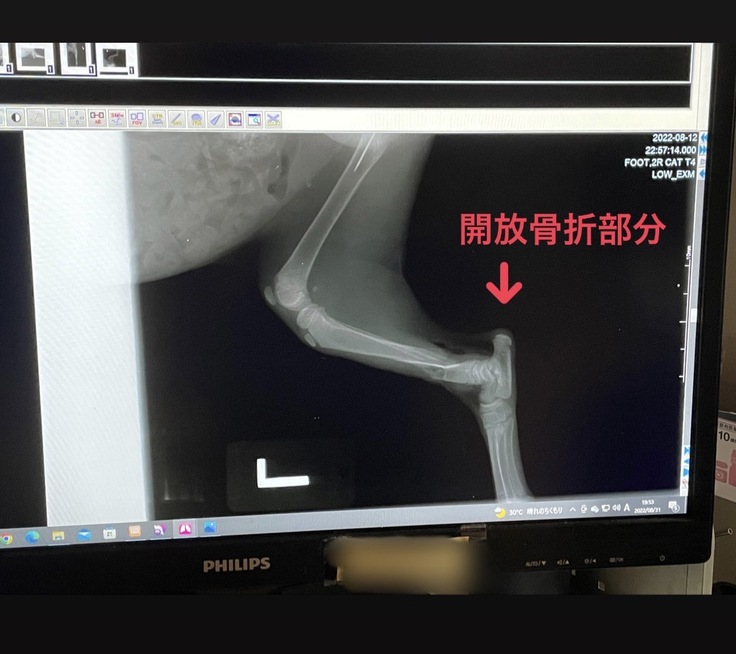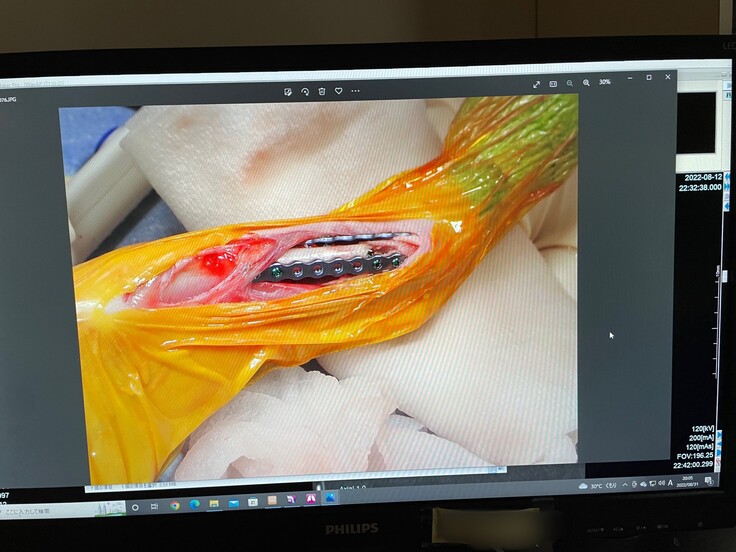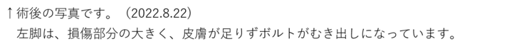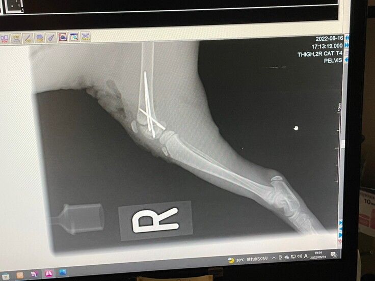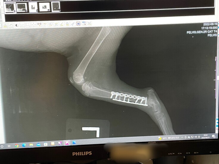 生後1か月ほどで手術を行ったため、脚を固定するボルトがうまく刺さっておらず、歩く邪魔になっており、撤去することになりました。