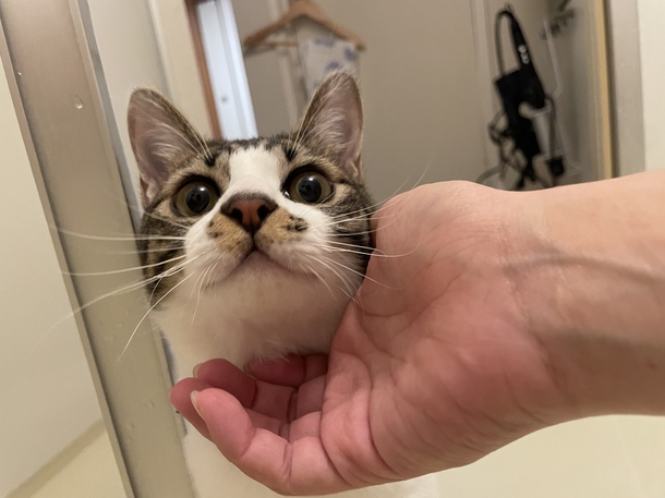 いつもお風呂入っていると遊びにくるのですが、昨日から湯船をずっと眺めらようになりました🛁
