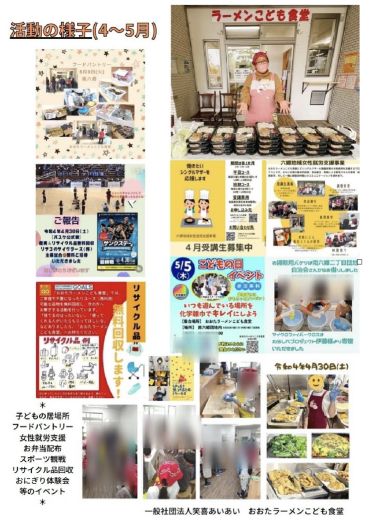 2018年より活動を開始し、大田区の本羽田地域と南六郷地域で活動をしております『おおたラーメンこども食堂』<一般社団法人笑喜(わき)あいあい>と申します。