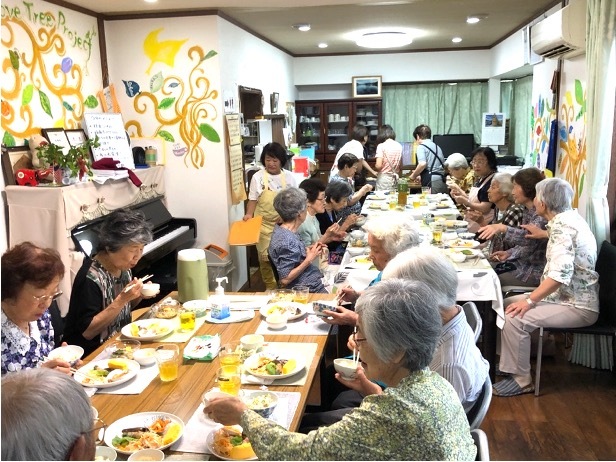 認知症の方も地域の高齢者も、ボランティアの方々も専門職も、一緒にお昼ご飯を作り一緒に食べ、午後はイベントを開催し楽しんだり学んだりして、多い時は30名近くの方々が集まりました