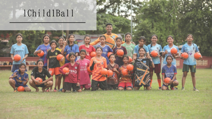 " 1 Child 1 Ball Project ” 「カンボジアの子供たち1人1人に1個ずつサッカーボールをプレゼントする」プロジェクト。ひとつのサッカーボールをきっかけにプロサッカー選手への道が開けるかもしれない。Angkor Tiger FCが周辺諸国の強豪クラブと互角に戦う姿を見て「自分たちも!」という希望や勇気を持てるかもしれない。我々Angkor Tiger FCの使命は、サッカーの試合や1 Child 1 Ball Projectを通じて、国民の夢と希望と勇気の象徴となり、カンボジアに明るい未来を切り拓くことだと考えています。