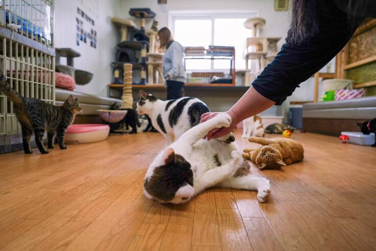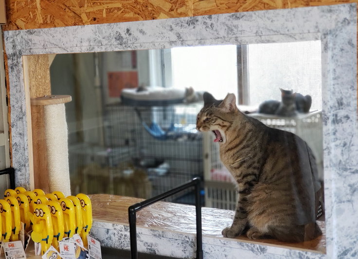 店内では、保護した猫ちゃん達と触れ合うことができる