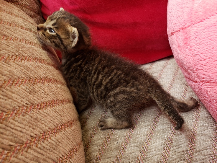 それでもこの子は今まで保護してきた子猫に比べてとても元気で、常に歩き回りよちよちながら、いろいろな場所を冒険して回ります。