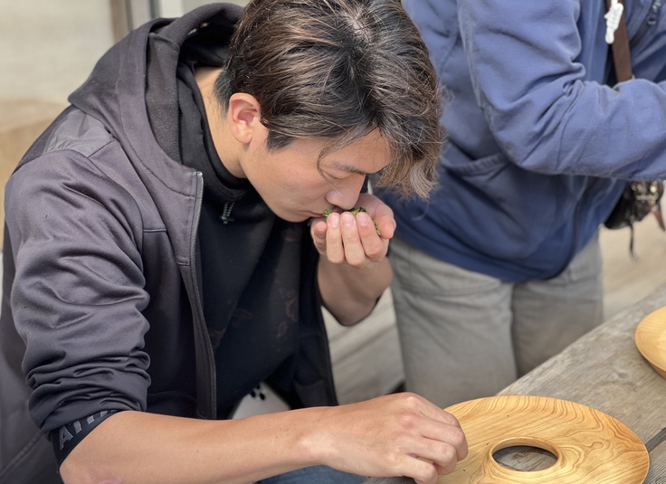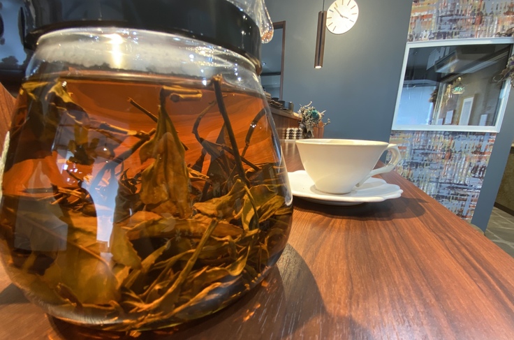 福岡県北九州市にある和紅茶のお店『tea bar horn』の店主である村上さんのご協力の元、令和4年10月には、現在の和紅茶を牽引されている熊本県の『天の製茶園』さん(茶葉の製造、紅茶の加工をされている)に視察をさせて頂き生産者の生の声を聞くことができました。同じ茶葉から揉捻(茶葉を揉む作業)の時間や強さ、発酵の具合、火入れの温度など様々な要因で茶葉の仕上がりが変わるということ。採取する茶の木の種類や、土壌、気候によって地域ごとの風味があることを学び、来年の収穫した茶葉を早く試してみたい!と良い刺激になりました。