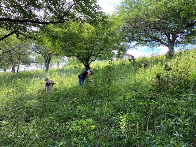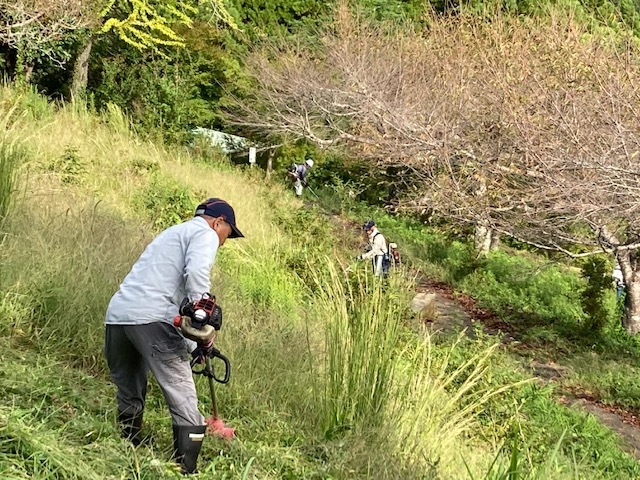 具体的には、下草の除草、伸びきった木々や桜の枝はもちろん、枯れた枝木の剪定や公園内の通路の法面が崩壊している部分の修補が必要です。