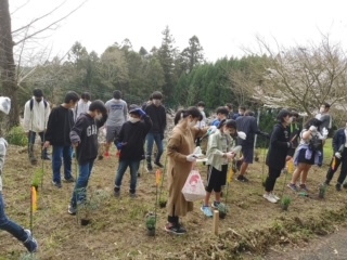 コロナ禍の中、思う様な活動ができませんでしたが、一月には、今年もきれいな桜が咲くようにテングス病にかかった枝うちを行い、三月には新型コロナウイルス感染症の拡大を受け、以前のような形での卒業式を迎えられなかった小学六年生と中学三年生と記念樹を植えました。