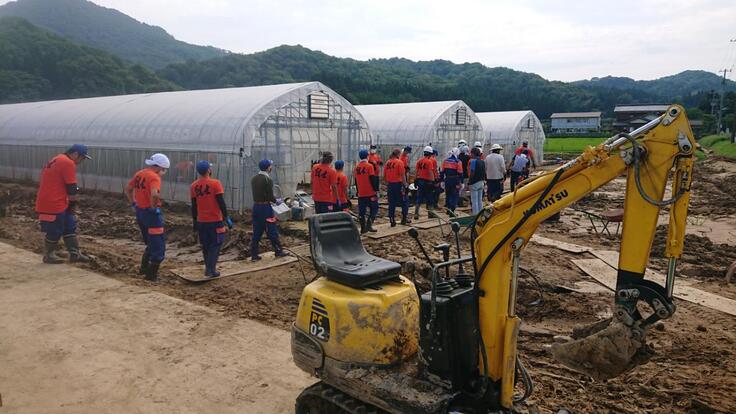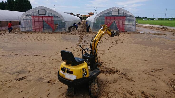 その日から猛暑の中、仲間たちやボランティアの方たちと連日のハウス内の泥出し作業が始まりました。