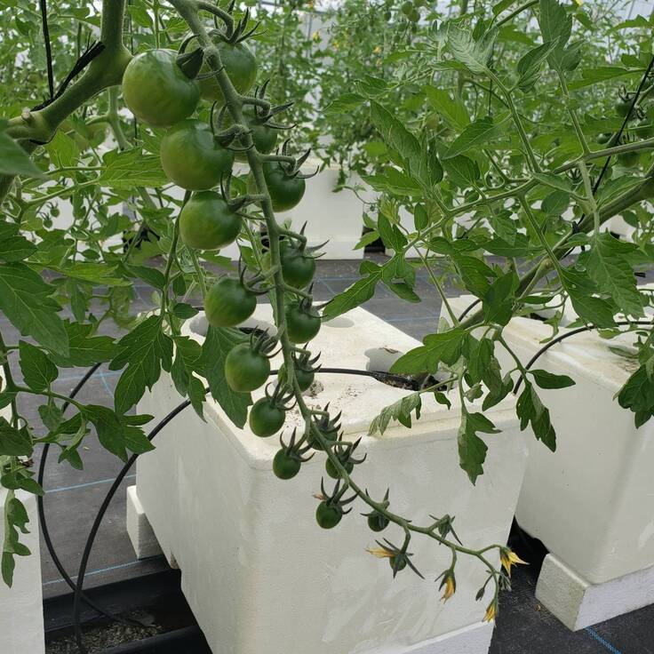 トマト栽培は田んぼの苗をすべて植えてからトマトを育てています。今年4年目で、初年度ミニトマトと大玉を栽培。2年目にミニ、中玉、大玉トマトを栽培し、昨年3棟を3品種のミニトマトに変更。今年は昨年人気のあった品種「ドルチェレッド」一種類で3棟の作付けを行っています。