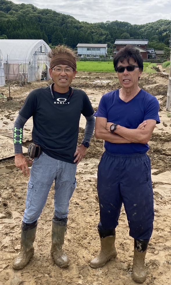私も当時、微力でしたが復興のお手伝いに何ヶ所か行ってきました。その中でも特に被害の大きかったところに私のラグビー部の教え子(髙野貞昭くん)がいました。農業で起業してやっと恰好が付いてきたところに津波のような土石流で田んぼ、そしてハウス内の資材などが壊滅的な被害を受けました。多くの方々の心暖まる支援を受け、少しずつ復活させていますが残念ながら資材類はすべて再生不可能となりました。すべて借金して購入した高価なものばかりでかなりのダメージを受けています。