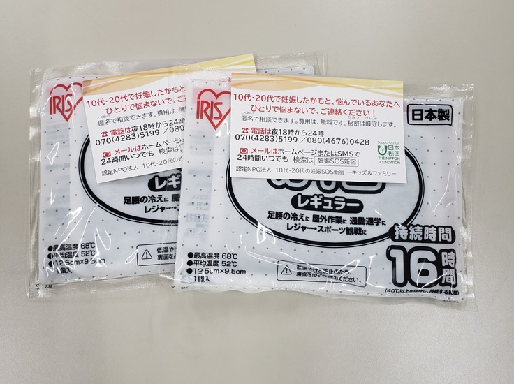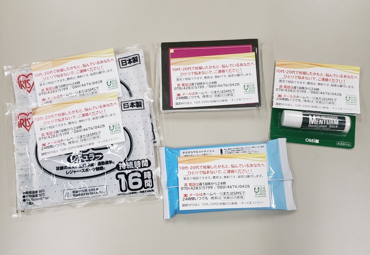 ↓↓↓パトロールの際に配布している一例です。冬の季節は寒さをしのぐカイロが大人気です!