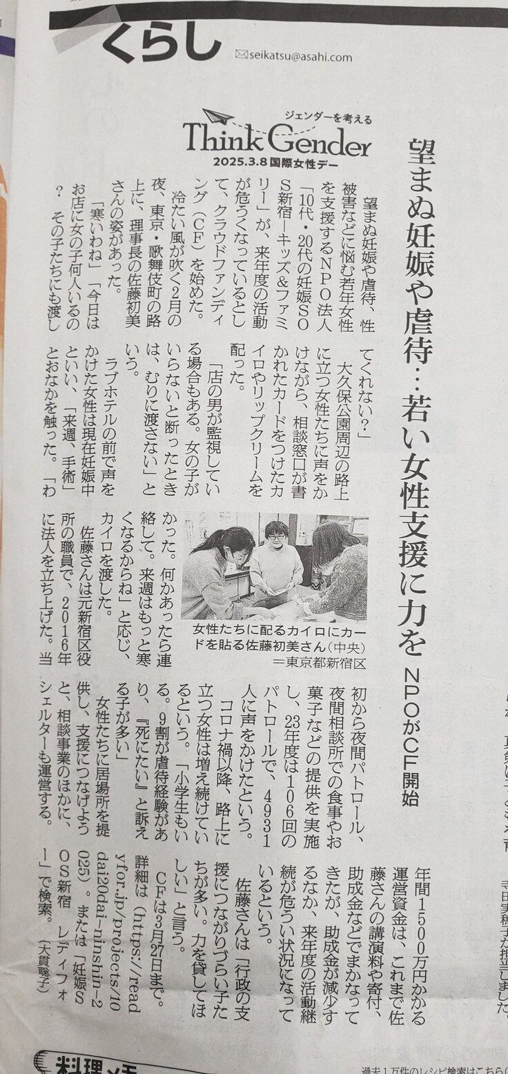 3月7日(金)には、『朝日新聞のくらし面』にて法人の記事が掲載されました。