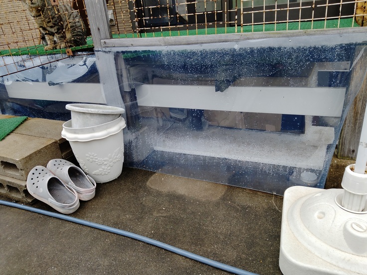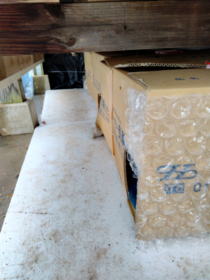 地面の白いのは発砲スチロールです。ホームセンターで400円くらいでしたが、